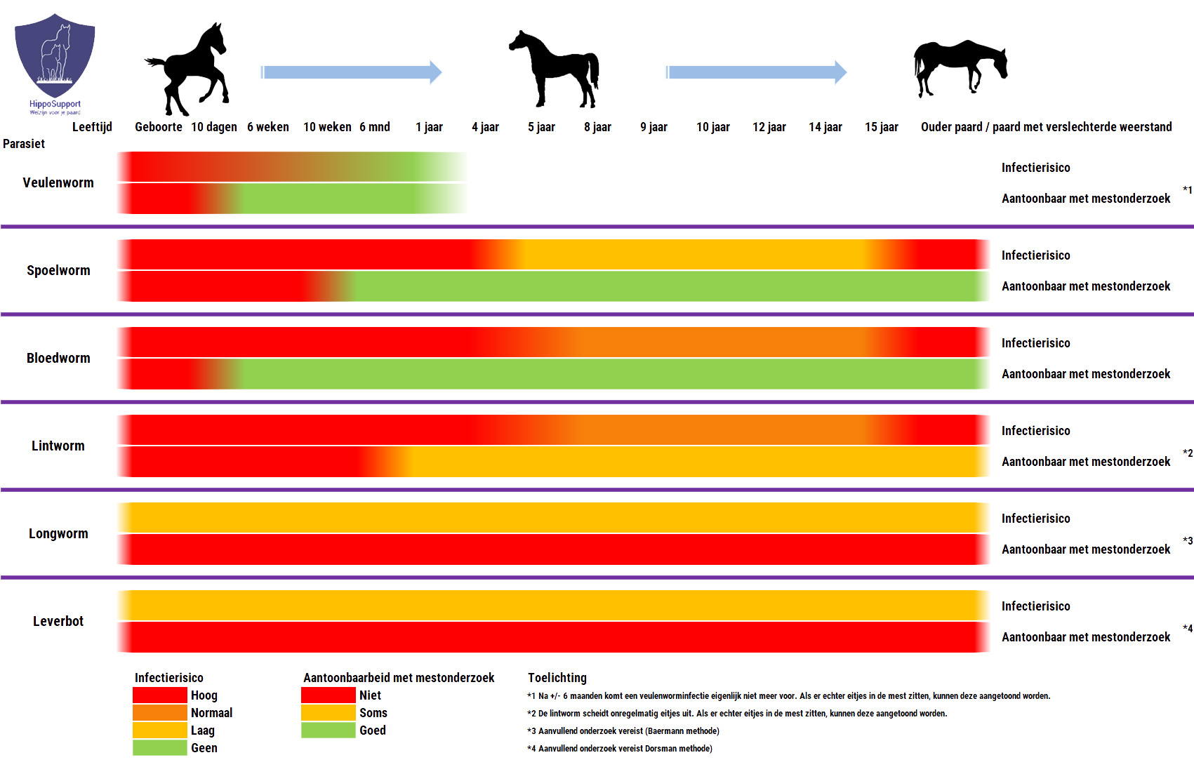| Ernst | Bij niet tijdig onderkennen kunnen ernstige gezondheidsproblemen ontstaan en kunnen paarden overlijden |